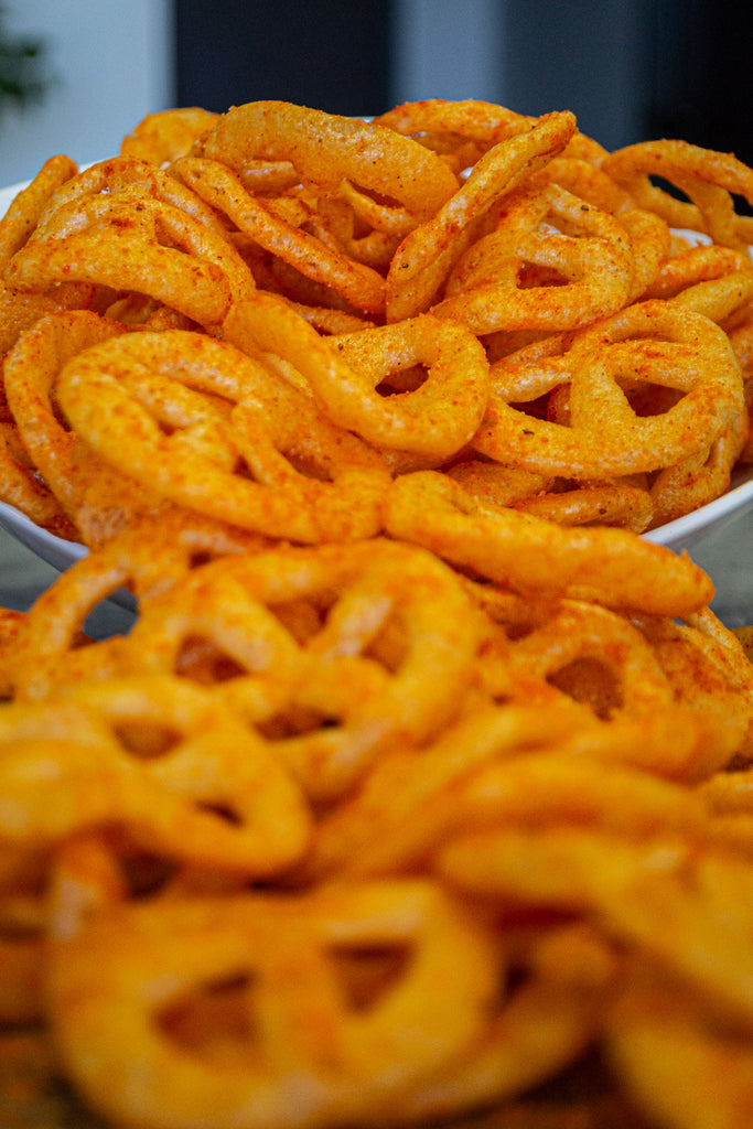 Turn up the heat on your snack game with our BBQ Flavored Pinwheel Chicharrones! These spiraled crunchies are your ticket to a flavor-packed barbecue adventure. Each twist is a smoky, savory explosion that'll transport your taste buds straight to a summer cookout. With the perfect balance of tangy and sweet, these chicharrones are more than just a snack—they're a backyard barbecue in every bite. So grab a handful, and let the grilling goodness begin!